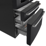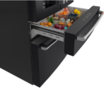 En cuanto a capacidad, ofrece 22.3 pies cúbicos, distribuidos entre 12.68 pies cúbicos de alimentos frescos y 6.73 pies cúbicos de congelador. Además, la cajonera central convertible de 2.92 pies cúbicos se ajusta a distintas temperaturas, facilitando la organización de carnes, bebidas, snacks o vinos. Asimismo, cuenta con divisores deslizantes, bandejas extraíbles y luz LED para mejorar la visibilidad.