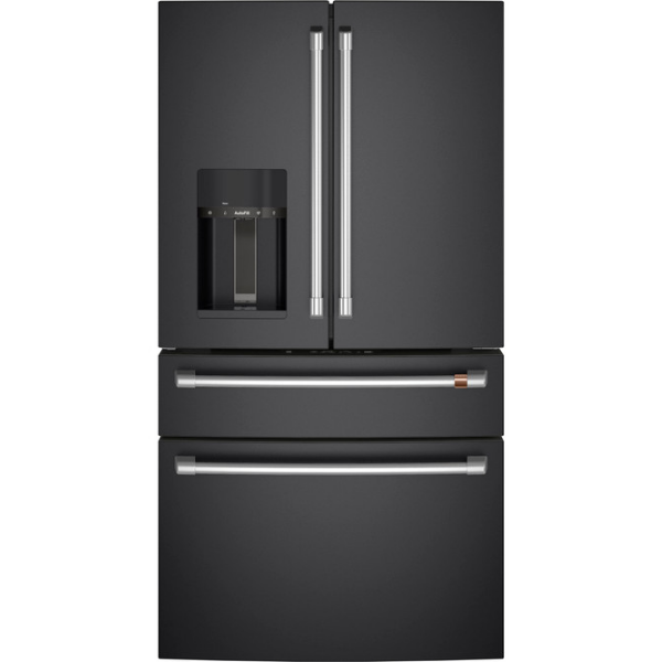 El refrigerador Café Energy Star CXE22DP3PD1 22.3 pies combina diseño moderno y eficiencia energética, por lo que se adapta a cualquier cocina. Además, su acabado en negro mate y puertas francesas le dan un aspecto elegante, mientras que la profundidad de mostrador permite una integración perfecta con los muebles. Por otra parte, sus manijas Café Pro en acero inoxidable y bisagras ocultas aportan estilo y funcionalidad.