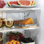 Con 23.1 pies cúbicos de capacidad, este refrigerador ofrece espacio suficiente para toda la familia. En particular, el compartimento de alimentos frescos cuenta con 15.93 pies cúbicos y la congeladora con 7.16 pies cúbicos. Además, incluye cajones ajustables, estantes de vidrio y un dispensador interno de agua. De igual manera, posee iluminación LED, bandejas para deli y almacenamiento para lácteos, lo que facilita la organización de los alimentos y mejora la visibilidad interna.