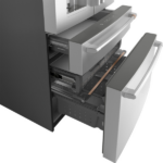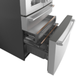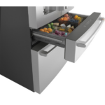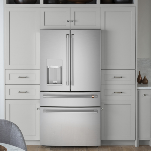 Este refrigerador Café Energy Star 27.8 pies CVE28DP2NS1 cúbicos combina diseño elegante y uso práctico. Primero, su formato de cuatro puertas facilita el acceso diario. Además, el acabado blanco mate resiste huellas, por lo tanto luce limpio con menos esfuerzo. Así, cada detalle aporta orden, comodidad y un estilo actual que se integra a cualquier cocina moderna.