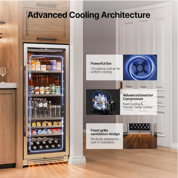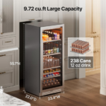 El refrigerador de bebidas Ca’Lefort B0FR4WWPQC es ideal para mantener tus bebidas siempre frías. Además, con unas dimensiones de 22″ de profundidad, 23,4″ de ancho y 55,1″ de alto, este modelo de acero inoxidable cepillado combina estilo y funcionalidad. Por lo tanto, su capacidad de 9,72 pies cúbicos permite almacenar hasta 238 latas, lo que lo hace perfecto para reuniones y fiestas. De hecho, ofrece suficiente espacio para todo tipo de bebidas.