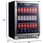 El refrigerador de bebidas EdgeStar CBR1502SG para 142 latas de 24 pulgadas es una solución funcional y atractiva para distintos espacios. En primer lugar, su puerta de cristal tintado permite ver el interior sin necesidad de abrirla. Además, su diseño en acero inoxidable aporta un aspecto moderno y limpio. Por ello, resulta ideal tanto para el hogar como para bares u oficinas. Asimismo, su tamaño facilita una integración sencilla bajo mostradores.