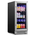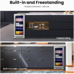 Finalmente, la puerta de vidrio sellada reduce la pérdida de frío y mejora la eficiencia. Además, incluye descongelación automática, filtro de carbón para aire fresco e iluminación LED azul interior. Así, no solo conserva mejor las bebidas, sino que también crea un ambiente moderno y agradable.