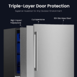Finalmente, este refrigerador se puede instalar debajo del mostrador, empotrado o de forma independiente, adaptándose a distintos espacios. Además, su bajo nivel de ruido y su eficiencia energética ayudan a ahorrar energía, mientras que su construcción resistente lo hace ideal para uso en exteriores durante todo el año.