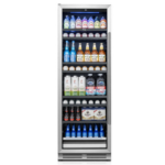 Por otro lado, su enorme capacidad permite guardar hasta 378 latas de cerveza, refrescos o agua con gas. Asimismo, cuenta con 7 estantes ajustables y un amplio cajón inferior. De este modo, organizar latas y botellas de distintos tamaños resulta fácil y práctico. Por eso, es ideal para familias, reuniones y espacios de ocio.