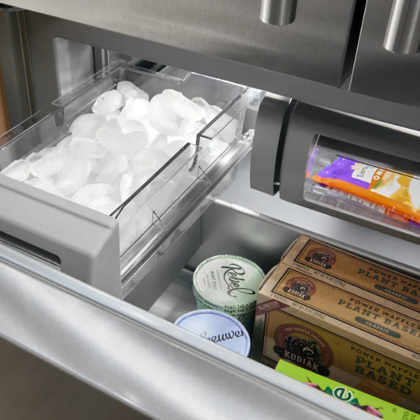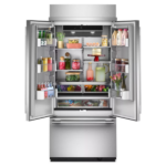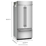 El refrigerador KitchenAid 36″» KBFN536SPS es un modelo empotrado elegante y moderno, que además de ser atractivo, también resulta muy funcional. Gracias a su acabado en acero inoxidable con PrintShield, se evitan huellas y manchas, por lo que siempre luce limpio. Asimismo, las puertas tipo French Door facilitan el acceso a los alimentos, mientras que el congelador inferior ofrece espacio adicional. Además, la luz LED brillante permite ver claramente todo su interior, y por lo tanto encontrar cualquier alimento es más sencillo y rápido.