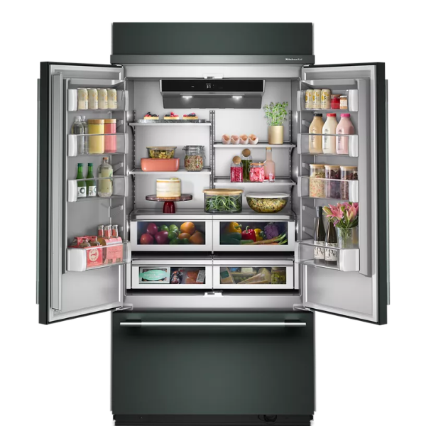 El Refrigerador KitchenAid 42″ KBFN542SBE es un equipo empotrable con diseño French Door y congelador inferior que combina estilo y funcionalidad. Además, su interior Platinum ofrece un acabado claro y moderno; por lo tanto, mejora la visibilidad y el orden. Asimismo, su capacidad de 24.2 pies cúbicos permite almacenar una gran cantidad de alimentos. De igual forma, cada compartimento está pensado para facilitar la organización diaria.