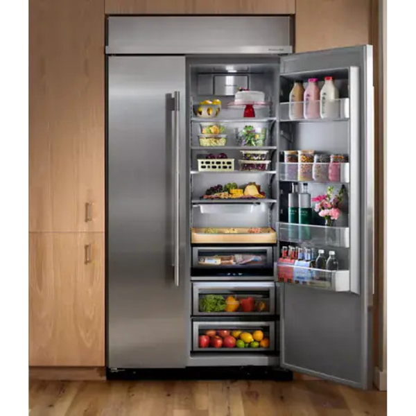 El refrigerador KitchenAid 42″ KBSN742SPS es una opción ideal para cocinas modernas y, además, aporta un diseño elegante. Su estilo Side-by-Side ofrece amplio espacio de almacenamiento y, por lo tanto, permite organizar frutas, verduras, carnes y bebidas de forma eficiente. Por otro lado, sus acabados en varios colores como acero inoxidable, negro y blanco se adaptan a cualquier estilo de cocina, proporcionando un toque de sofisticación y armonía.