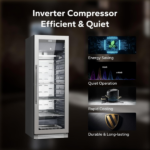Este modelo incluye un sistema de refrigeración inversor que mantiene la temperatura entre 34°F y 77°F. Además, la humedad se regula entre 60 y 85% sin usar agua externa. Así, se conservan carnes y alimentos frescos por más tiempo, mientras que las alarmas y el control táctil mejoran la seguridad.