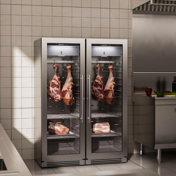El vidrio templado con protección UV bloquea la luz y mantiene el frío estable. Por lo tanto, las carnes logran mejor sabor y textura. Finalmente, el proceso de envejecimiento en seco de 21 a 45 días, junto con soporte por 12 meses, garantiza resultados confiables y uso seguro en cualquier cocina.