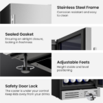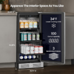 El refrigerador Yeego para hasta 80 Bebidas de 14 pulgadas es una opción práctica y elegante para mantener tus bebidas frías. Además, con dimensiones de 22,4″ de profundidad, 14,8″ de ancho y 34,3″ de alto, se adapta fácilmente debajo del mostrador o en cualquier espacio independiente. Por lo tanto, su puerta de acero inoxidable con espuma de alta densidad asegura un buen aislamiento, evitando que el aire frío se escape, al mismo tiempo que ofrece durabilidad y seguridad.