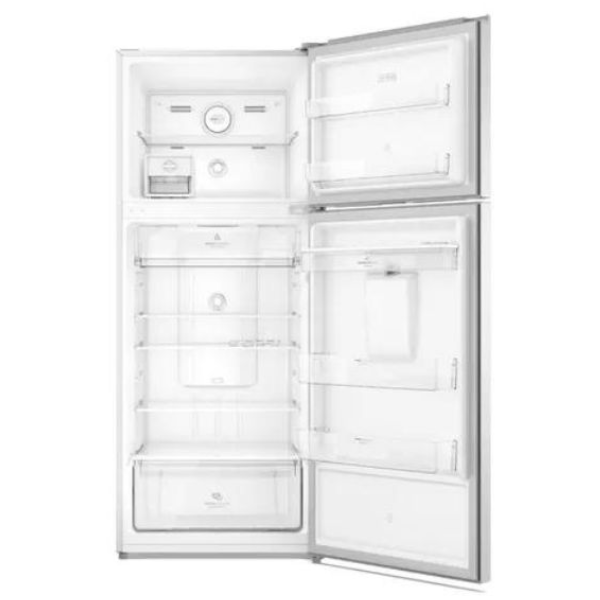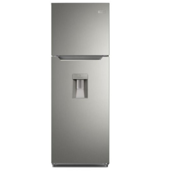 Sus puertas reversibles y su bandeja para huevos brindan mayor flexibilidad, mientras que su iluminación LED interna y bandejas de vidrio templado facilitan la organización y visibilidad de los alimentos. Además de su diseño moderno en color plateado, este refrigerador destaca por incluir un dispensador de agua frontal, que ofrece comodidad y frescura al instante.