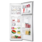 Sus puertas reversibles y su bandeja para huevos brindan mayor flexibilidad, mientras que su iluminación LED interna y bandejas de vidrio templado facilitan la organización y visibilidad de los alimentos. Además de su diseño moderno en color plateado, este refrigerador destaca por incluir un dispensador de agua frontal, que ofrece comodidad y frescura al instante.
