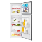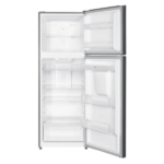 Por otra parte, la comodidad también forma parte de su diseño. Incluye un dispensador de agua fría para llenado manual y tres parrillas de cristal templado que soportan el peso de tus alimentos. Además, su amplio espacio permite organizar bebidas, frutas, vegetales, lácteos y embutidos de manera fácil y práctica. Así, tendrás todo a la mano y tu rutina diaria en la cocina será más sencilla.