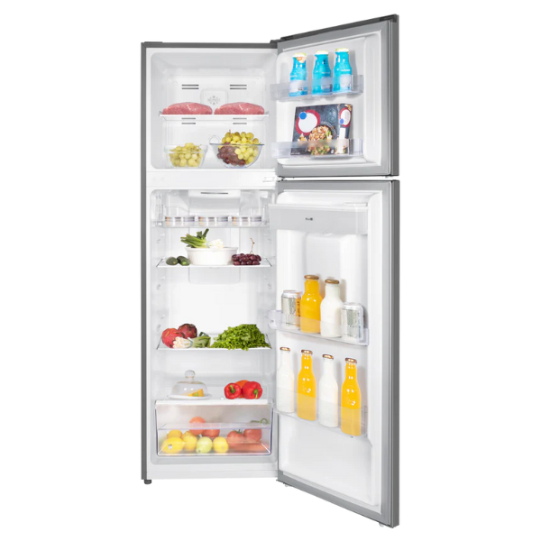 En cuanto a su interior, la refrigeradora cuenta con parrillas de vidrio templado, que no solo son resistentes, sino también fáciles de limpiar. De esta manera, es posible distribuir los productos de forma cómoda y segura. Además, su diseño facilita la visibilidad de los alimentos, evitando desperdicios y manteniendo todo al alcance de la mano.