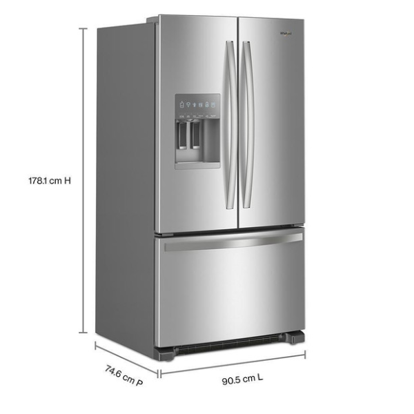 La refrigeradora Whirlpool French 24.7P WRFF3436RZ con puertas francesas es una excelente opción para familias que buscan comodidad y espacio. Con un ancho de 36 pulgadas y una capacidad de 25 pies cúbicos, este modelo ofrece un amplio almacenamiento sin sacrificar el diseño. Además, su estilo moderno se adapta fácilmente a cualquier cocina, combinando funcionalidad y elegancia en un solo electrodoméstico.