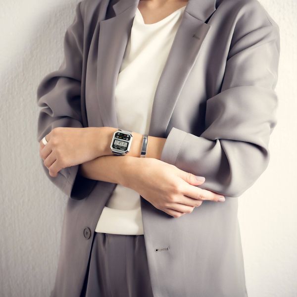 La correa de acero inoxidable del A100 Vintage se ajusta cómodamente a la muñeca, lo que lo convierte en una opción cómoda para llevar durante largas jornadas. Además, es fácil de leer, lo que permite verificar la hora, la fecha y la alarma de manera rápida y sencilla.