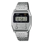 Este reloj también es resistente al agua, lo que significa que puede usarlo sin preocuparse por las salpicaduras accidentales o la lluvia. Además, su correa de acero inoxidable es duradera y cómoda de llevar. Con un broche de una pulsación y triple pliegue, el Reloj Casio A1100 Clásico se mantiene seguro en su muñeca.