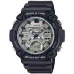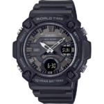 El reloj Casio AEQ-120W destaca por su diseño robusto y fácil de leer. Además, cuenta con una caja grande de 53.3 × 52.2 × 16.6 mm y esfera elevada, lo que le da un estilo resistente y moderno. Por lo tanto, su bisel amplio y los marcadores contrastantes permiten ver la hora con claridad en cualquier situación, haciendo que sea un reloj práctico para el día a día. De hecho, combina funcionalidad con un diseño atractivo que se adapta a diferentes estilos.