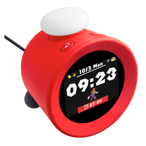 Despiértate cada mañana con diversión gracias al Reloj despertador Nintendo Sound Clock: Alarmo. Este original despertador no solo te muestra la hora, sino que además te acompaña con música y efectos de sonido inspirados en tus videojuegos favoritos. Así, levantarte de la cama ya no será aburrido, sino todo un momento especial. Por otro lado, gracias a su diseño interactivo, comenzarás el día con energía y con una experiencia distinta cada vez.