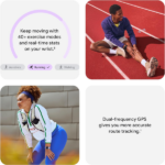 Finalmente, este reloj destaca por sus funciones de salud y deporte. Incluye más de 40 modos de ejercicio, GPS integrado y seguimiento preciso de rutas. Además, mide la frecuencia cardíaca, el sueño y otros datos clave. Por lo tanto, es una excelente opción para usuarios Android activos.