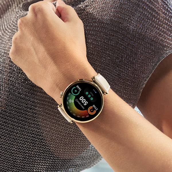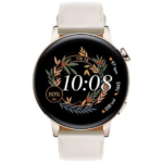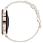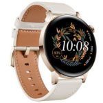 El diseño del Huawei Watch GT 3 es moderno y resistente. Por lo tanto, su caja redonda de 42 mm de acero inoxidable dorado combina perfectamente con la correa de cuero blanca ajustable. Además, es resistente al agua y al polvo, lo que significa que puedes usarlo mientras nadas o realizas actividades al aire libre sin problemas.