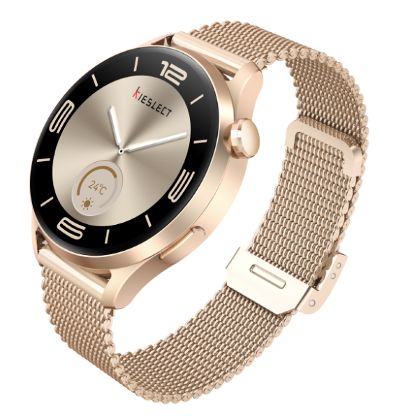 El reloj Kieslect inteligente Lady Lora Reno 3 combina tecnología moderna con un estilo elegante. Además, su diseño delgado y ligero, fabricado en aluminio resistente, garantiza comodidad y durabilidad. Por lo tanto, su acabado dorado ofrece un toque sofisticado que resiste rayones, manteniendo su belleza con el tiempo. En consecuencia, es perfecto para quienes buscan un reloj que sea funcional y a la vez elegante.
