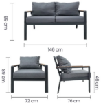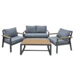 Con sus materiales resistentes y diseño funcional, esta sala exterior ofrece comodidad y estilo durante todo el año. Además, se integra fácilmente con cualquier decoración y crea un ambiente acogedor para disfrutar del aire libre en familia o con amigos. Por lo tanto, es una opción versátil y atractiva para quienes buscan elegancia y durabilidad en muebles de exterior.