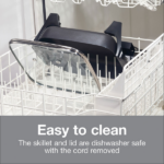 Por último, la limpieza es sencilla. Después de cocinar, la superficie antiadherente se lava fácilmente con agua y jabón, y tanto la sartén como la tapa son aptas para lavavajillas después de retirar el cable. Además, incluye una garantía limitada de 3 años, lo que respalda su calidad y durabilidad.