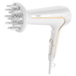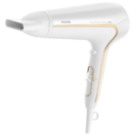 Secador Philips ThermoProtect Ionic 1900W ofrece secado rápido y protección del cabello con ajuste constante de temperatura y flujo potente, mientras que los iones reducen la estática y aumentan el brillo, logrando un peinado suave y definido con menos frizz.