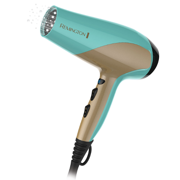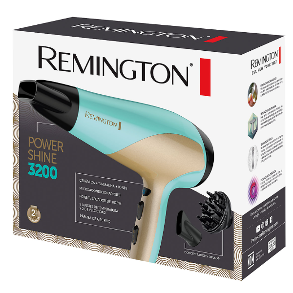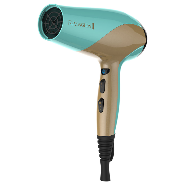 El secador Remington D3190TG (110)F de color azul oro es perfecto para quienes desean un peinado rápido y profesional. Además, gracias a su potente motor de 1875 W, puedes secar tu cabello de manera eficiente sin dañarlo. Por lo tanto, tu rutina diaria será más fácil y rápida. Asimismo, su diseño moderno y elegante lo hace cómodo de sostener y fácil de usar, mientras que tu cabello luce brillante y saludable.