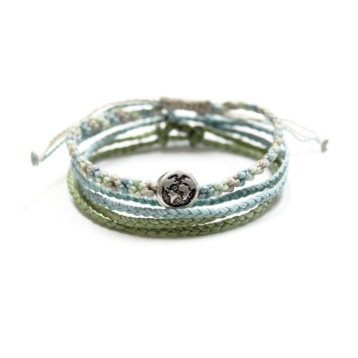 El hilo de poliéster encerado confiere a estas pulseras una textura agradable y suave al tacto. Además, su fabricación con este material resistente las hace ideales para el uso diario, pudiendo soportar los rasguños y desgaste del juego infantil. Su color verde suave y natural es apropiado tanto para niñas como para niños.
