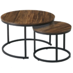 El set de 2 mesas de centro Tokoa es ideal para darle un toque elegante y moderno a tus espacios. Además, su diseño combina metal y madera aglomerada laminada en melamina de alta calidad, lo que asegura durabilidad y estilo en cualquier ambiente. Por lo tanto, estas mesas no solo son funcionales, sino que también aportan tendencia a la decoración de tu hogar u oficina.