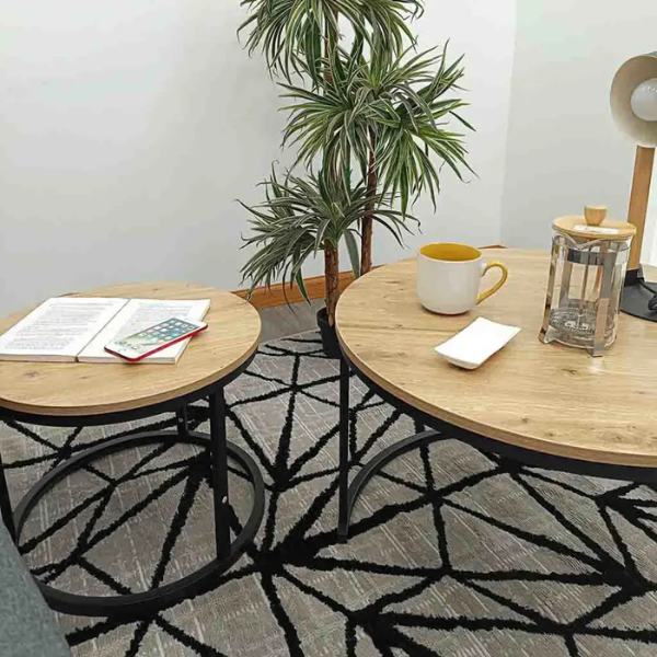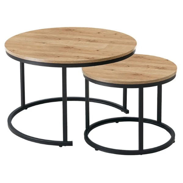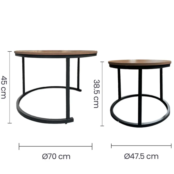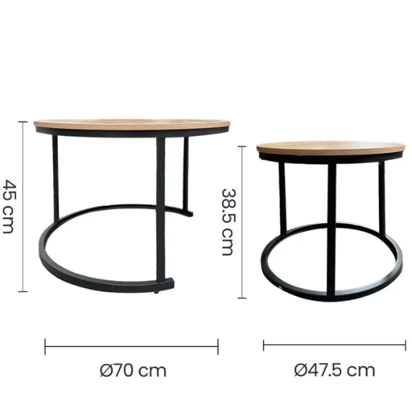 El set de 2 mesas de centro Tokoa es ideal para darle un toque elegante y moderno a tus espacios. Además, su diseño combina metal y madera aglomerada laminada en melamina de alta calidad, lo que asegura durabilidad y estilo en cualquier ambiente. Por lo tanto, estas mesas no solo son funcionales, sino que también aportan tendencia a la decoración de tu hogar u oficina.
