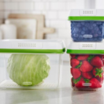 El Set FreshWorks 3 recipientes Rubbermaid incluye tres tamaños: 4.6 tazas, 7.2 tazas y 18.1 tazas, ideales para almacenar diferentes cantidades de frutas, verduras y hortalizas. Su material libre de BPA asegura un almacenamiento seguro para toda la familia y es completamente apto para lavavajillas, lo que facilita su limpieza. La tapa se ajusta perfectamente a cada recipiente, ofreciendo un cierre hermético que protege los alimentos de olores y humedad.