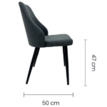 Por otra parte, su respaldo contorneado brinda un excelente soporte, lo que garantiza comodidad incluso durante largas comidas o reuniones. Asimismo, su forma ergonómica ayuda a mantener una buena postura, aportando bienestar y estilo al mismo tiempo. Gracias a su altura de asiento de 47 cm, esta silla se adapta perfectamente a la mayoría de las mesas de comedor, lo que la hace muy práctica y funcional.