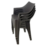 La silla está fabricada con plástico resistente y duradero, lo que garantiza estabilidad y seguridad al sentarse. Igualmente, cuenta con protección UV, por lo que puedes usarla en exteriores sin preocuparte de que se deteriore con el sol. Así, se convierte en una opción confiable para uso prolongado, tanto dentro como fuera de casa.