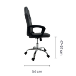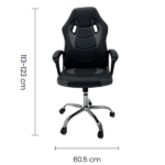 La silla está hecha con vinilo de alta calidad y una base de metal cromada de 32 cm, lo que garantiza durabilidad. Además, tiene respaldo y asiento reclinable con seguro y brazos cubiertos de vinilo, para ofrecer más confort. Gracias a esto, es posible jugar, estudiar o trabajar por horas sin molestias