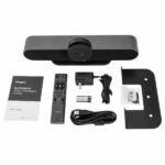 Por otro lado, una de las características clave de este sistema es su cámara ultra gran angular, que ofrece un campo de visión de 120°. Esto significa que puede capturar la totalidad de la sala, lo cual es ideal para reuniones pequeñas o medianas. Adicionalmente, el zoom digital 5X y la función PTZ permiten enfocar fácilmente al presentador sin perder calidad de imagen.