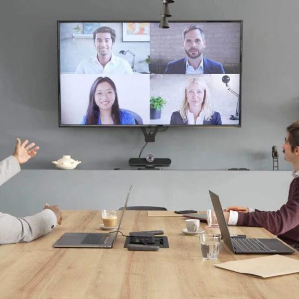 Por último, este sistema está diseñado para adaptarse a cualquier entorno de trabajo, ya que puede montarse fácilmente en la pared o colocarse sobre una superficie plana o monitor, gracias a su base de goma antideslizante. Asimismo, los micrófonos tienen un alcance de hasta 6 metros, lo que asegura que todas las voces se escuchen con claridad, mejorando así la experiencia de colaboración en equipo.