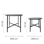 • Mesas: Ø49 cm x 45 cm y Ø39 cm x 35 cm.