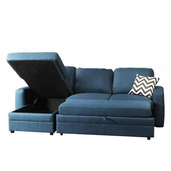 Este sofá seccional te ofrece la comodidad de un sofá cama, lo que lo hace ideal para recibir invitados o disfrutar de una siesta placentera. Asimismo, el chaise con baúl integrado brinda espacio extra para guardar cojines, cobijas, zapatos u otros objetos, manteniendo todo en orden. De igual manera, su piecero movible se adapta fácilmente a tus necesidades, ya sea a la izquierda o a la derecha, ofreciendo versatilidad en cualquier momento.