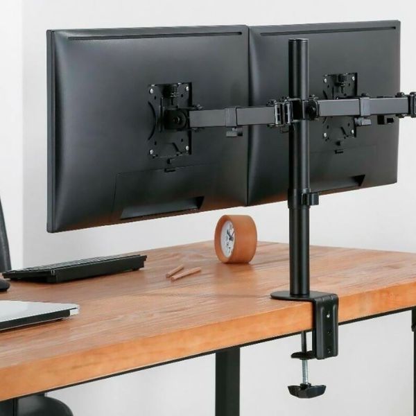 El soporte doble ArgomTech para pantallas de 13″ a 32″ se eleva por ser una solución práctica y elegante para organizar tu espacio de trabajo en casa o en la oficina. Fabricado en acero y plástico resistente, este soporte se instala fácilmente con una abrazadera que se ajusta a escritorios con un grosor de 10-85 mm, proporcionando estabilidad y seguridad para tus monitores.