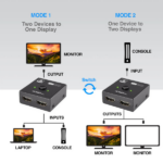 El Switch ArgomTech Splitter 2 en 1 HDMI 4K es la solución ideal para mejorar tu experiencia audiovisual. Además, con este dispositivo, puedes conectar tus equipos de manera más práctica y cómoda. Por lo tanto, te permite ahorrar espacio y tiempo, haciendo que tu configuración sea más ordenada y eficiente. Asimismo, gracias a su diseño compacto, es fácil de transportar y usar en cualquier lugar.