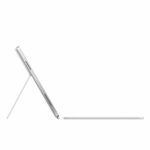 Finalmente, el diseño del Magic Keyboard Folio es extremadamente versátil. Consta de dos piezas: un teclado desmontable y un panel trasero protector que se adhieren magnéticamente al iPad, proporcionando una protección completa. Su base ajustable te permite adaptar el ángulo de visión según tus necesidades, lo que garantiza una experiencia de uso cómoda y práctica en cualquier lugar.