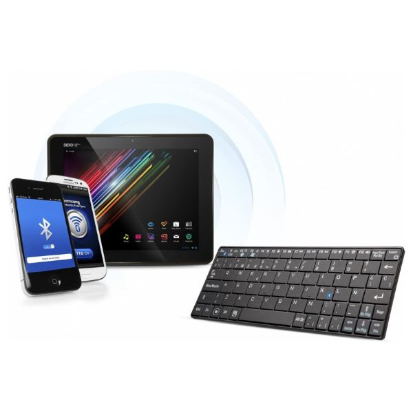 Redactar un correo electrónico o postear en redes sociales desde tu Smartphone o Tablet puede ser todavía más cómodo con el Teclado portátil de Energy Sistem, diseñado con la última tecnología bluetooth 3.0 para una eficiente conexión inalámbrica con tus dispositivo. Cómodo tamaño y diseño ultra-slim para facilitar el transporte. Además, sus teclas planas de pulsación son cómodas y silenciosas.
