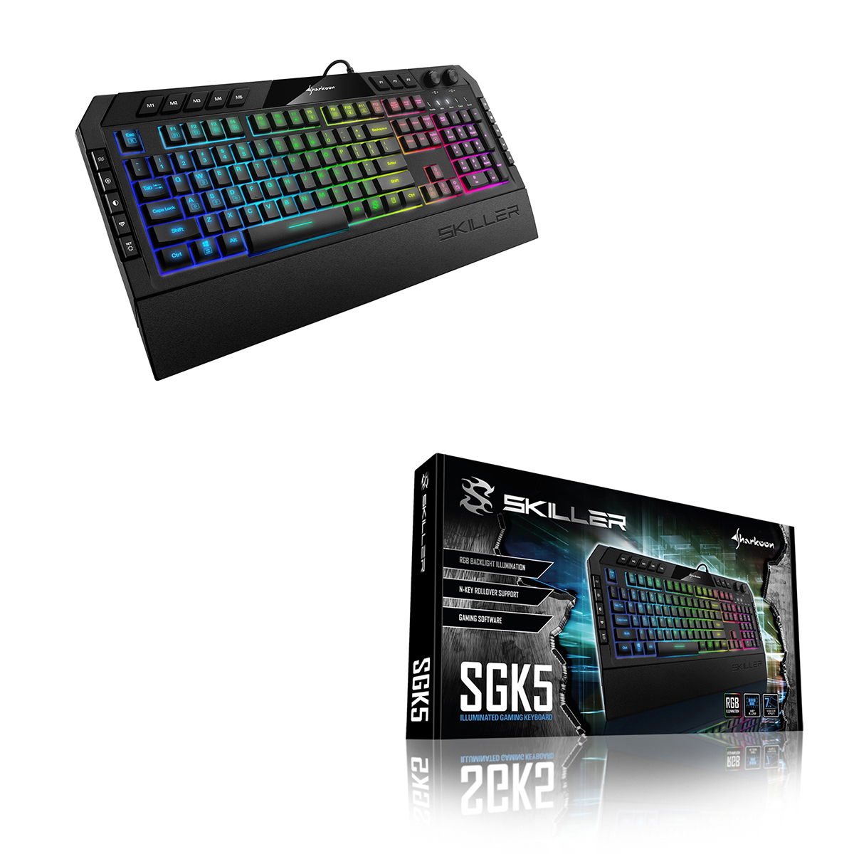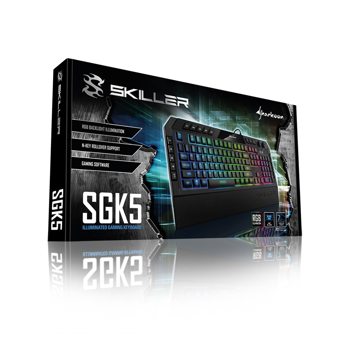 La iluminación de fondo del Skiller SGK5 se puede colocar en seis zonas y 16,8 millones de colores. Varios efectos están disponibles sin necesidad de usar el software gaming descargable.