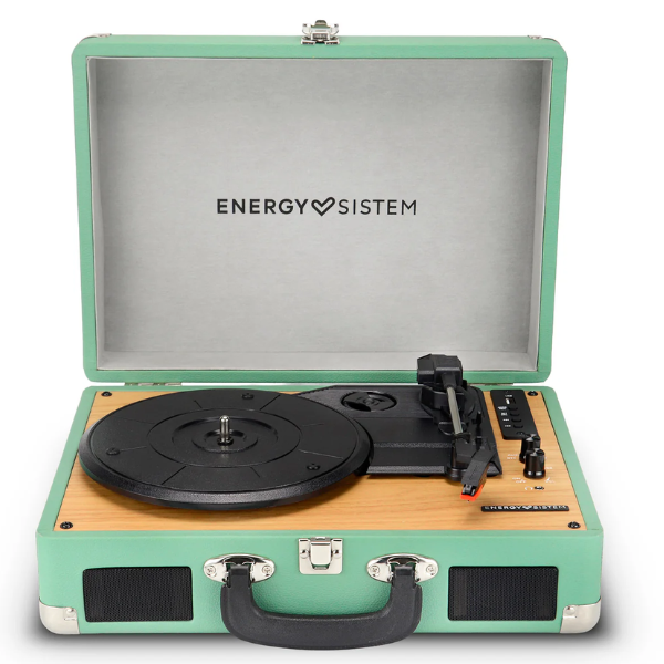 El tocadiscos Energy Sistem Aquamarine RetroSpin ofrece un sonido claro y equilibrado gracias a sus dos altavoces de 40W. Además, su recinto acústico mejorado permite una experiencia envolvente y nítida, perfecta para disfrutar de tus vinilos favoritos. Por lo tanto, con el sistema de tracción por correa, la reproducción es suave y estable, reduciendo al mínimo las vibraciones que afectan la música.