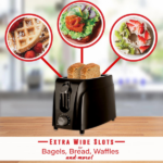 Asimismo, sus guías de centrado automático garantizan un tostado uniforme en cada rebanada, evitando que un lado quede más quemado que el otro. Además, gracias a su función de elevación alta, sacar las rebanadas es mucho más fácil, lo que te ayuda a evitar quemaduras.