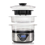 Es un producto sencillo de utilizar, solo tenés que llenarlo con agua, colocar uno o dos de los tazones transparentes llenos de comida encima de la base y programar el temporizador de cocción; cuando la comida está lista el vaporizador suena y cambia automáticamente a calentar durante una hora.